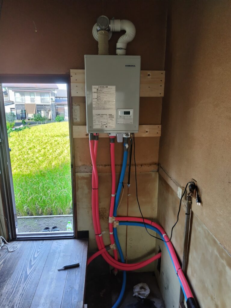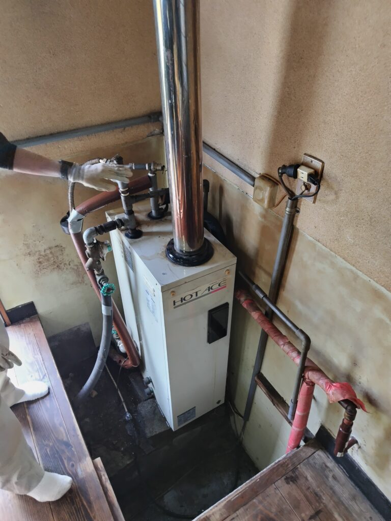 本日は床置き型ボイラーから壁掛け型ボイラーへの交換交換工事を行いました。