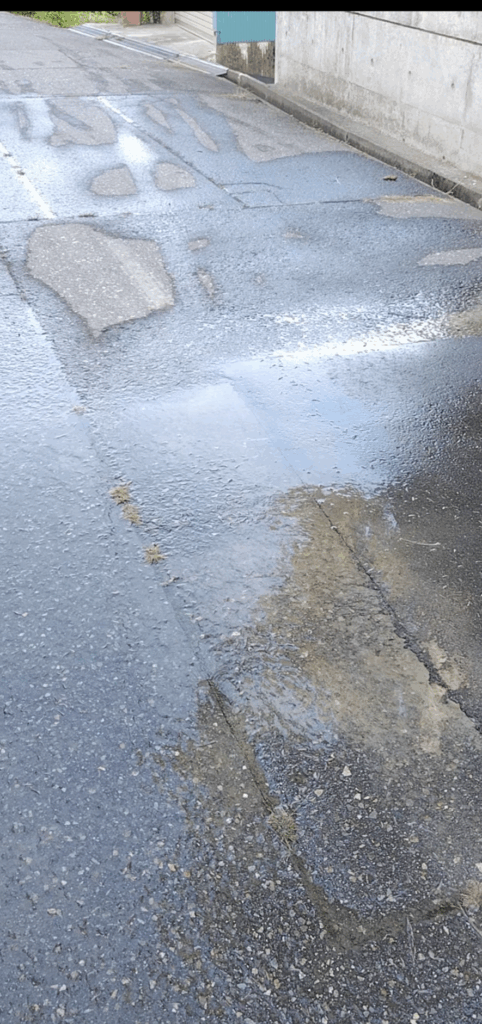 現場に到着すると、漏れだした水で道路一面が濡れておりました。