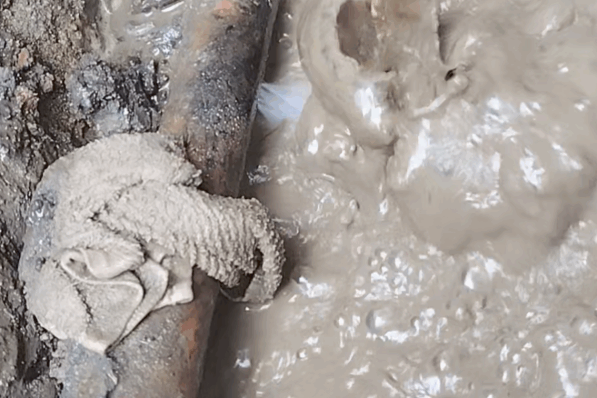 穴を掘って、漏水の修理をします。漏水の原因は配管の老朽化による破れでした。